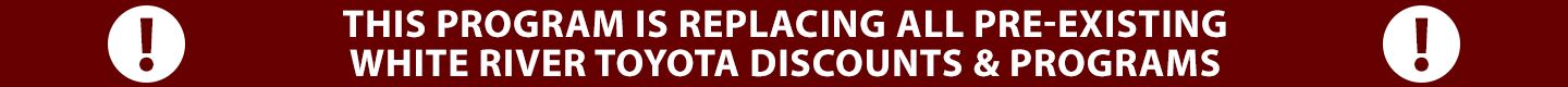 For every $1 you spend at White River Toyota's Sales Department you will be rewarded with 1 loyalty point. Collect points to receive a discount! See below for more details.