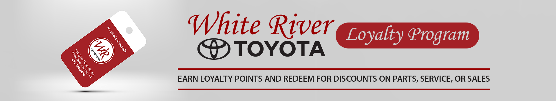 For every $1 you spend at White River Toyota's Parts & Service Department you will be rewarded with 1 loyalty point. Collect points to receive a discount! See below for more details.